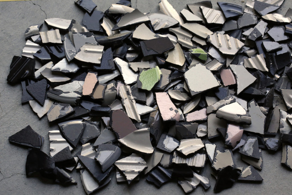 공장에 도착한 VERMICULAR 제품은 재용해를 위해 전용 기계를 이용해 작은 조각으로 재단합니다.